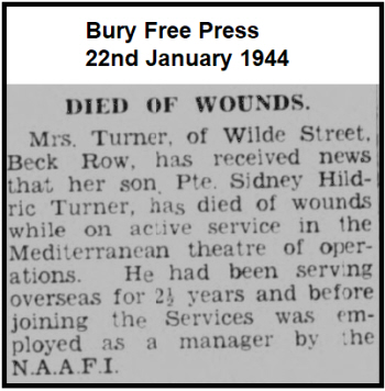 Sidney Hildrick Turner was born in 1914 (Mildenhall Q3 1914 4A:1846) son of George and Anna Rosa TURNER (née PAYNE), of Beck Row.