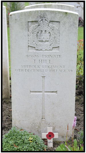Thomas Hill was born in Brinkley in 29th July 1878 (German records)(Newmarket Q4-1878 3B:536), baptised Brinkley 27th October 1878, son of Richard Thomas and Kezia Ann HILL (née HART).