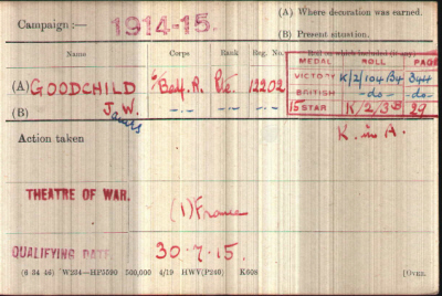 Born in Burwell on 7th April 1894 [Newmarket 3b:513], the eldest of 7 sons and 4 daughters of William and Maud Mary GOODCHILD (nee BADCOCK) of Bedlam Square,