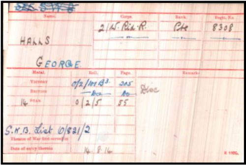 One of his Army forms gives his family details, marriage, child and including younger brothers Tom HALLS and Bert HALLS living in Burwell with his mother Elizabeth MARTIN, which seems to be a not uncommon mix up of surnames.