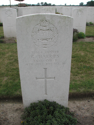 The discrepancy between recording his unit by CWGC as Machine Gun Corps, and by the Medal Rolls as Tank Corps is that the six tank companies were grouped as the Heavy Branch of the Machine Gun Corps (MGC). On 28th July 1917 by Royal Warrant they were renamed "Tank Corps". Thus, at his death, Gilbert was actually still in the Machine Gun Corps. The difference on 'Soldiers Died' regarding his being formerly in Royal Fusiliers is harder to explain. From "Walking the Salient" by Paul Reed:- Prior to Third Ypres long range German guns fired at Dirty Bucket, and German Gotha bombers were also active in the area from 1917. In one such incident men of 'C' Bn.Tank Corps came under fire on 4th July 1917 when the battalion orderly room was hit, wounding two officers and two men, killing four Gunners and a Corporal. This matches the CWGC records for Gilbert's death. 'Dirty Bucket Camp' was named after the nearby cabaret 'De Vuile Seule'. |