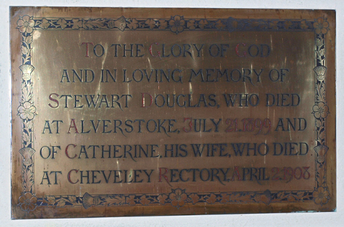 Plaques in church..it appears that his aunt Catherine Douglas died in Cheveley Rectory