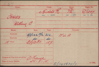 Born Chelsea about 1899. The William Charles Jones, born Chelsea (Chelsea Q1-1900 1A:440) but his mother's maiden name was Clarke. His family is so far still unproven, apart from his apparently being the son of Kate Elizabeth JONES (née WOODS ? born Norton 1875).and Grandson of Emily Anne WOODS of Exning, and it seems, the brother of Katherine Elizabeth JONES (born 1897 in Fulham). It was possibly his mother, a servant, at Severals Lodge, Newmarket in the 1891 census, but a marriage cannot be found to Jones. From CWGC he was the son of the late Mrs Kate Elizabeth Jones of Fulham, London. From "grandmother" below:- Emily Anne WOODS, 10 Ash Terrace, Lacey's Lane , Exning had her 14 years old granddaughter Katherine Elizabeth JONES with her in 1911, who could be a sister of William, but this Katherine has not been identified in the 1901 census or birth registrations. Mrs Woods' son William WOODS was killed very early in the war. and is included in these records. William's entry in "Our Exning Heroes" reads as follows: Jones, W. 12th Batt. Middlesex Regiment. William Jones, a grandson of Mrs. Woods at the Telephone Office, Oxford Street, was killed while changing sentries, by a bullet under the right eye on January 8th, 1916. Death was instantaneous, and he was buried near Meaulte. He was in the Parish Church Choir as a boy, and afterwards went to a situation in London where he joined up soon after war broke out, although he was then considerably under age, and not 18 when he died. The following are extracts from a letter to Mrs. Woods, written by a 2nd Lieutenant: "Your grandson always worked cheerfully and well, we all miss him very much….On one occasion I had to call for five volunteers to reconnoitre some cottages and sundry roads in front of our lines, and about sixty yards from the German trenches. One of the first to volunteer was your grandson, and our party was out for about four hours (at night, of course). He was quite good at this work, and perfectly cool and steady all the time." A report in the Newmarket Journal of 5th February 1916:- KILLED IN ACTION Pte. William Charles Jones was, we regret to learn, killed in action on January 8th last. Pte Jones, who joined the 12th Middlesex Regt. soon after the outbreak of the war, was only 17 years of age. He was a grandson of Mrs. Woods, of the Exning Telephone Office, who brought him up as a child, both of his parents dying when he was a child.. He had been working in London before he enlisted. While at Exning he was a member of St.Martin's Church choir. A son of Mrs. Woods' was the first Exning hero to lay down his life in the present war. She has two other sons and two sons in law now serving, but Pte Jones was the only grandson whom she had in the Army. The Cambridge Independent Press of 4th February 1916 recorded:- LOCAL CASUALTIES - Exning Man Killed - Private Wm.Charles Jones of the 12th Middlesex Regt.,grandson of Mrs. Woods of the Telephone Call Office, Exning, was killed in action on January 8th. He was only 17 years of age. He was brought up by his grandmother in Exning and was a choir boy at the parish church.Mrs Woods has two sons still serving. One of her sons was the first Exning soldier to be killed in the war. |
