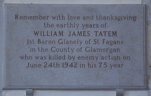 William TATEM was created a baronet in 1916 and 1st Baron Glanely of St. Fagan's in the County of Glamorgan, in 1918. The son of Thomas and Louisa TATEM, he