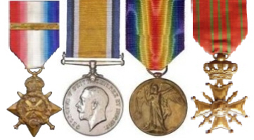 1914 Star and clasp. War medal, Victory medal and the Belgian Croix de Guerre