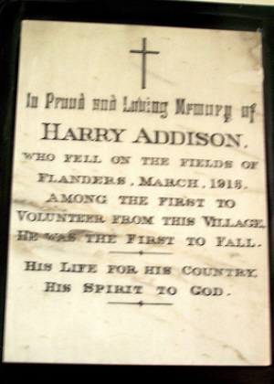 Harry John Addison was born in Honington in 1888 (Thetford Q4-1888 4B:374). The son of John and Elizabeth ADDISON (née PREST).