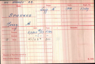 Percy Alfred was born in Herringswell in 1894 (Mildenhall Q3-1894 4A:750). He was the son of Richard and Jessie Maria SPARKES (née ROGERS).