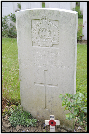 Ernest Edward Pettitt was born in Kirtling in 1896 (Newmarket Q3-1896 3B:518), son of Edward and Sarah PETTITT, (née PURKISS).