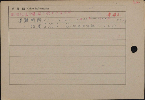 prisoners still kept below in the hold, many dying of starvation and disease Eventually,on September 20, 1944, the Hofuko Maru [KA-27} (with 1,289 prisoners on board) and 10 other ships formed Convoy MATA-27, and sailed from Manila for Japan. The following morning, the convoy was attacked 80 miles north of Corregidor by more than 100 American carrier planes. All eleven ships in the convoy were sunk. Of the 1,289 British and Dutch POWs on board the Hofuku Maru, 1,047 died. On 21st September 1944 the Hofuku Maru sailed with Convoy MATA-27 for Takao in Formosa. She was attacked by an American aircraft carrier about 80 miles north of Corregidor, the aircraft carrier’s planes sunk the whole fleet including the Hofuku Maru, not knowing she carried prisoners locked in the holds. The Hofuku Maru was carrying 1289 prisoners from Manila to Japan, 1047 were lost. |