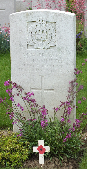 Born Laurence George Henry GRIFFITHS in Newmarket in Q3-1896 [Newmarket 3b:532] eldest son of Albert and Priscilla GRIFITHS (née WADE) of 41 Lowther Street,