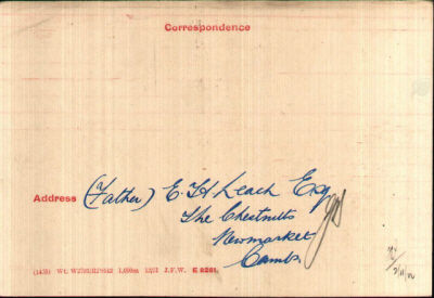 Born in Newmarket in Q4-1887 [Newmarket 3b:504] to Edward Hugh and Harriet Alicia LEACH (née HARRISON) of 6 Queensbury Buildings,