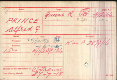 Born in Newmarket in Q3-1891 [Newmarket 3b:504], 3rd son of John and Caroline PRINCE (née HARVEY) of 27 Turf Terrace (then Lower