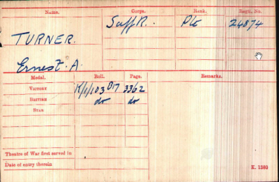 Born in Newmarket in Q2-1886 [Newmarket 3b:556] eldest son of John and Elizabeth TURNER (née PILBROW) of 6 Melton Cottages, Park
