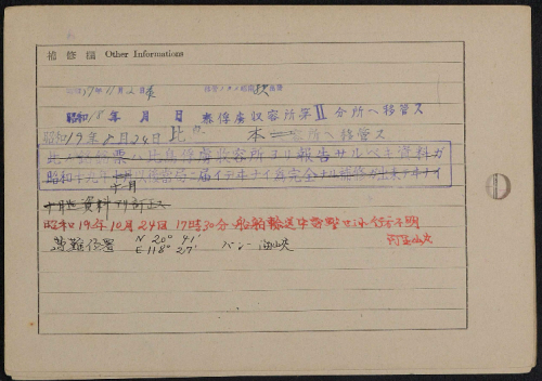 He was captured in Singapore on 15th February 1942, the day Singapore was surrendered to the Japanese. Kenneth's name is on the roster of those who died on the "Arisan Maru" which was sunk by the US submarine "Shark" ( herself sunk in this action) or possibly USS Snook. on 24th October 1944 at about N 20° 14' - E 118° 27', in the Bashi Strait, between Luzon and Taiwan. She had left Manila with about 1,800 prisoners on board, mainly US servicemen. The 9 survivors recounted that nearly all the prisoners were able to get off the ship, but the Japanese would not rescue any of them. It in not known how Kenneth became to included with the US servicemen nor how many other British there may have been on board |