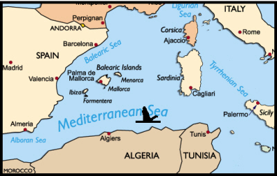 37:20 N, 05:30 E. north-east of Bougie, Algeria. 83 of her crew were lost but survivors were picked up by the US destroyer USS Niblack.