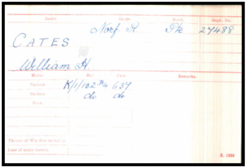William Cates is commemorated on the Jerusalem Memorial, Israel - panels 12 to 15