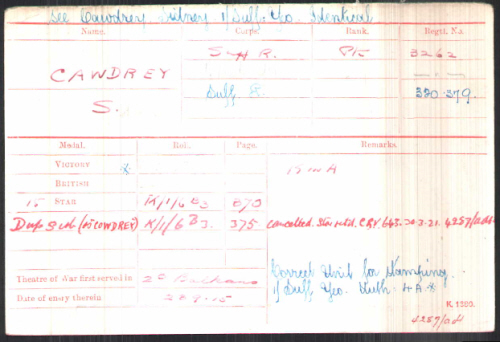 No.320379, Lance Sergeant, Sidney John COWDREY