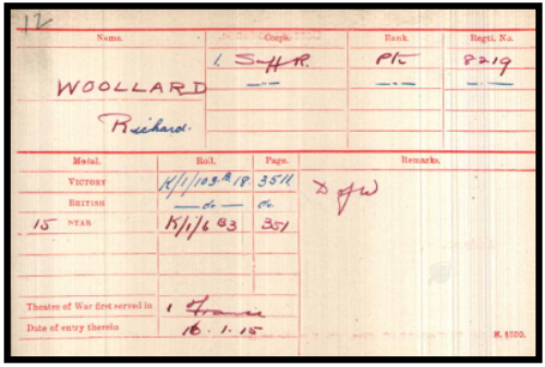 Richard Woollard was born in Stetchworth in 1892(Newmarket Q1-1892 3B:514) son of Isaac and Lucy WOOLLARD (née GINN).