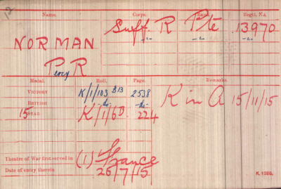 Percy Robert Norman was born in Wicken on 3rd October 1895,(school register-birth registration not yet found), son of Nathan and Charlotte Elizabeth
