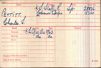 He enlisted in Leicester. As he died of his wounds and his service records are have not been found it is impossible to say exactly where or when he was wounded. Being in the Labour Corps makes it even more difficult to find where his unit was even. |