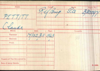 Claude Pettitt was born in Woodditton (Newmarket Q2-1898 3B:334), son of David Nelson and Sarah Ann PETTITT (née SWANN).