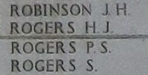 1911 census...Aged 3, he was in Ampton with his father John ROGERS [39] labourer in woods born Pakenham; his mother Jane Susannah E [36] born Whepstead; brothers Bertie John [13], Sidney Thomas [12] and sister Victoria Daisy [9] all born in Little Livermere, brothers Robert Victor [7] and Arthur William [5] born Ampton. There was another brother, George [14] born Fornham St Martin, who was with his grandparents, Henry and Eliza MUSK, at School Lane, Fornham St Martin. In the 1939 register, at 9 Ampton were his father John [14-12-1866] a gamekeeper; his mother Jane [10-1-1876] and brother Robert V [10-8-1903] a gardener. There are no closed records. His elder brother Bertie John was killed in the Battle of Arras in 1917 see here |