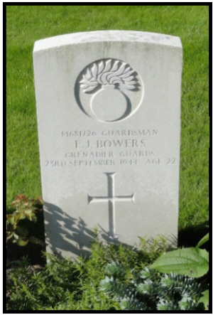Ernest John Bowers was born in Ashen (Risbridge Q4-1922 4A:1424), son of Bertie and Dorothy Kate BOWERS (née PEACOCK).