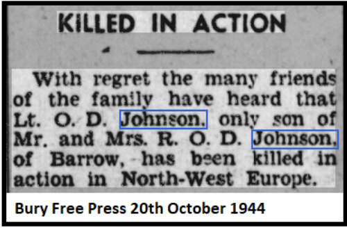 Oliver Denn JOHNSON was born in 1919 (2nd qtr 1919 Bury St.Edmunds 4a:1234) son of Reginald Oliver Denn and Marjorie Morgan JOHNSON (née OLIVER)
