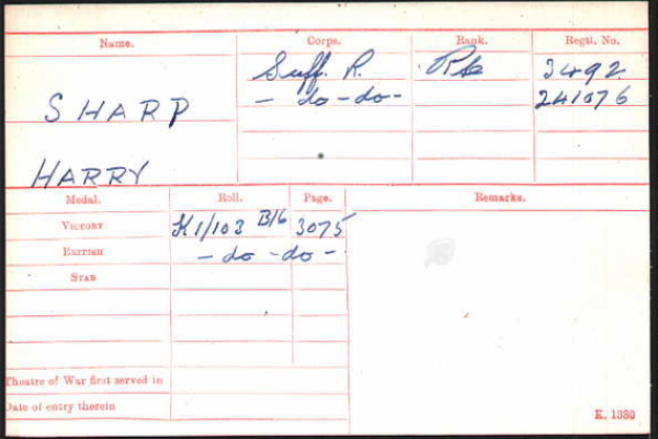 Harry Charles Sharp was born Barrow (1st qtr 1883 Thingoe 4a:649) son of John and Sophia D.SHARP(née SMITH)