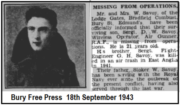 Derrick William SAVOY was born in 1922 (1st qtr 1922 Bury St.Edmunds 4a:1666) son of William and Alice SAVOY (née SPARKE)