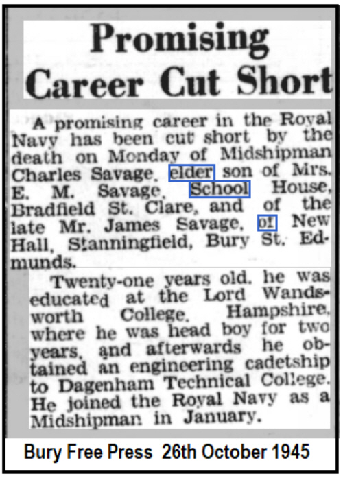 Charles George Savage was born in 1924 ( 2nd qtr 1924 Bury St.Edmunds 4a:1533) son of James and Edith May SAVAGE (née INCE)