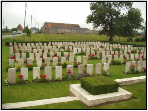 His battalion had been in the line, support and reserve along the Steenbeck and at Foch Farm. Without his service records it cannot be confirmed where or when he was wounded The Bury Free Press of 8th June 1918 reported:- BARDWELL LAD DIES OF WOUNDS "I have to acquaint your with the sad news of the death of your son, Rifleman William A,Ruffles, R.I.R, who was wounded by a bomb on April 24th and died on the way to hospital." The above is an extract from a letter received by Mr. and Mrs. Arthur Ruffles, of Know Lane, Bardwell, concerning the fate of their only son. The deceased soldier enlisted in theSuffolk Yeomanry in Jan.1916 being in training at Culford. He was afterwards transferred to the Warwickshire Regiment and upon being drafted to France was transferred to the 15th Royal Irish Rifles. Rifleman Ruffles had been home on leave, and had only been back in France 20 days when he met his death. Much sympathy is felt for the bereaved parents in their sorrow.