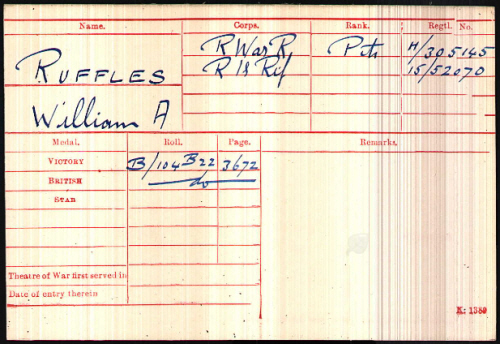 No.52070, Rifleman, William Arthur RUFFLES