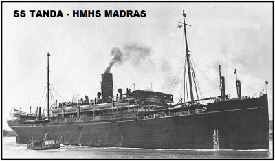 father Edward, brothers Arthur and John, all of Church End Brandon and Walter in London as a policeman. Initially posted to the 1st battalion, be moved to the 2nd battalion on 8th February 1911 as he moved to India. He remained in India until 5th November 1914. He was an acting bandsman and a promising clarinet player. The battalion then moved to Mesopotamia. While there he was laid low by fever and weakness in his legs. From a Field Ambulance in Amara he was admitted to General Hospital in Basra on 9th August 1915. Beri beri was diagnosed and he was evacuated on the Hospital Ship "Madras" (previously SS "Tanda") to India. On the voyage he died and was buried at sea, hence he is commemorated on the Chatsby Memorial in Alexandria. SS Tanda - HMHS Madras (1914-1919) click here to go to the Commonwealth War Graves Commission website for full cemetery/memorial details |