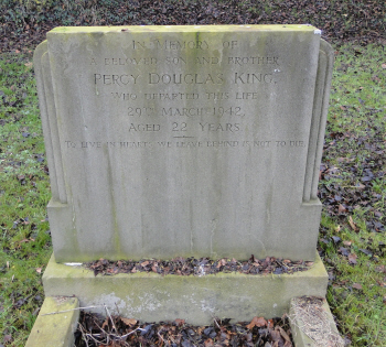 Percy Douglas King was born in Chevington (3rd qtr 1919 Bury St.Edmunds 4a:1438) son of Arthur and Annie KING (née PREWER) In the 1939 register his father Arthur KING [18-6-1883] farm carter; mother Annie [28-9-1883] and sister Evelyn [29-1-1923] shorthand typist, later Mrs ABBOTT, were "near the Chapel", Tan Office Green, Chevington |