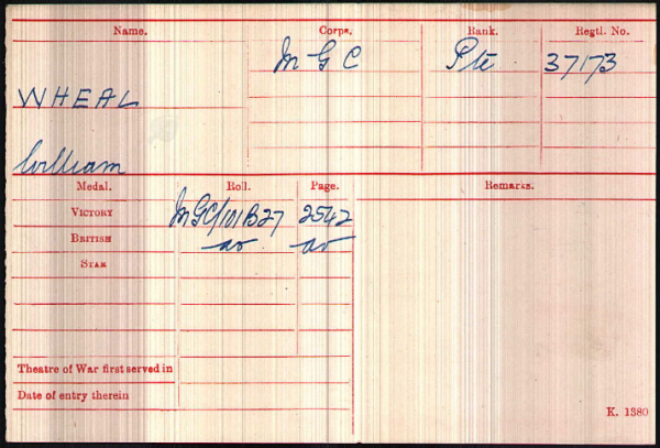 No.37173, Private, William WHEAL