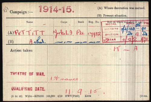 Arthur Pettitt was born in Castle Camps (Linton Q3-1892 3B:507), baptised in Castle Camps on 2nd February 1893, son of William and Elizabeth PETTITT
