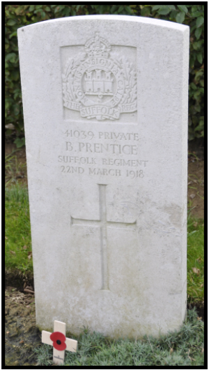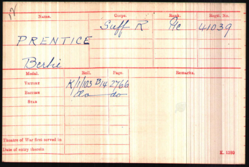 He enlisted in Bury St Edmunds, reverting to his legal surname of PRENTICE.