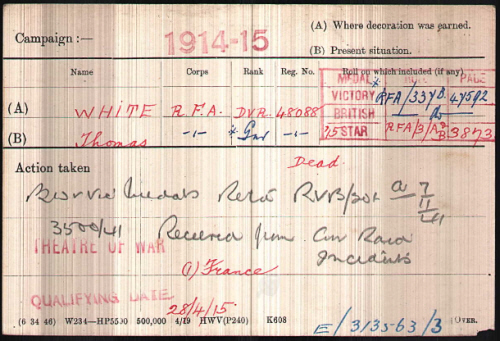 Thomas Harper Alfred White was born on 10th October 1894 (Hackney Q4-1894 1B:439), baptised in St Faiths, Stoke Newington on 25th November 1894, son of Thomas Alfred and Alice Maud WHITE (née HARPER).