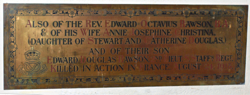 Edward Douglas Rawson was born in 1892 in Ince, Cheshire (Chester Q1-1892 8A:415), baptised 24th March 1892 in Ince, son of Rev Edward Octavius and Annie