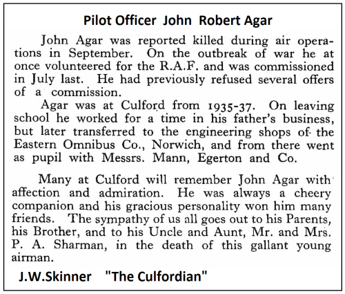 John Robert AGAR, born 8th April 1921, was the eldest son of Leonard Edwin and Aline Marry AGAR (née WILLSON). His birth registration