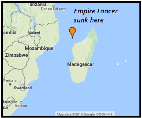 On 16th August 1944 the SS "Empire Lancer (7,000 tons) was sailing unescorted in the Mozambique Channel when she was torpedoed by U-862 (Heinrich Timm).