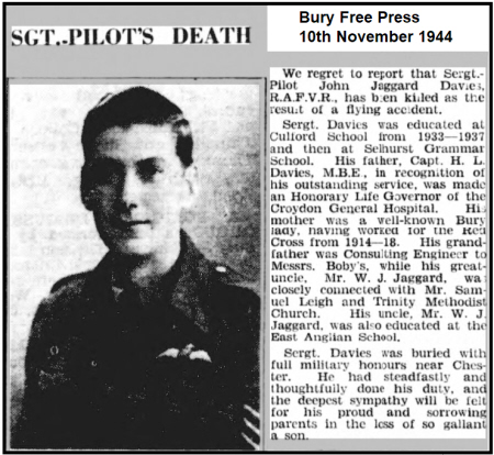 instructor 1473487, F/Sgt Goodinson, G.A. and the pilot under training, 1605847 Sgt Davies, John Jaggard.J. were both killed instantly.