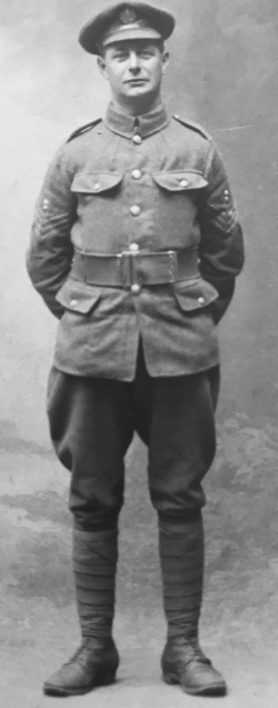 He enlisted in London in August 1915. He was trained in chemicals, having been the Chemistry Master at the East Anglia School hence his being placed in