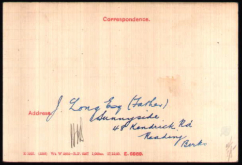 1901 census...Aged 5, he was at 18 West End, Witney with his father John LONG [50] builder; his mother Annie [48]; sisters Louisa[20], Kate [13] and Jessie [11] and grandfather Henry WIGGINS [78]. All were born in Witney. 1911 census...Aged 15, learning carpentry, he was still at 18 West End with his parents and sisters Kate and Jessie. Two of the 7 children had died. The "East Anglian Record" confirms his time at the school. After his death his parents were at "Sunnyside", 48 Kendrick Road, Reading. |
