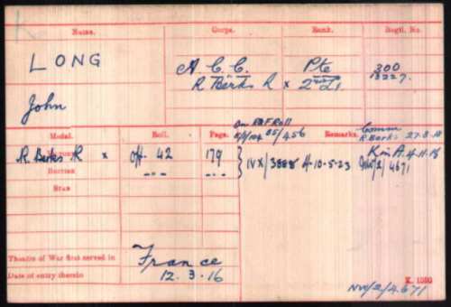 Jack LONG was born in Witney on 28th August 1895 (Witney Q4-1895 3A:829),son of John and Annie LONG (née WIGGINS). Sometimes he is John, at others he is Jack.