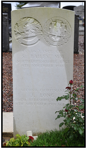 at Fleet on 8th March 1918. His commission in the Royal Berkshire Regiment was effective 23rd August 1918. His superiors at the Officers course reported that he "possessed a poor voice but otherwise has the making of a good officer, and has a high sense of duty". Also that he was "inclined to be a little tame, but is thoroughly reliable. He failed his examination but is recommended for a commission". His personal effects returned to his father were 1 wallet, 1 disc, letters and photos, and 1 flask. The war diary is too long to transcribe here, but in summary the Battalion together with the 10th Essex and the 7th Royal West Kents were to advance through the Forest of Mormal. Despite opposition and casualties they did achieve their objective. Unusually, the officer casualties are not named so unless his service record gives details, that is all we know of John's whereabouts on this day. CWGC figures give 12 of the battalion killed this day.