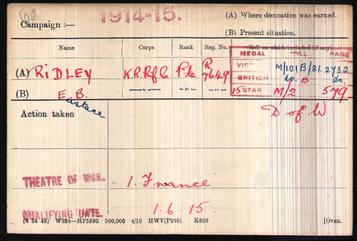 R/7649, Rifleman, Eustace Bernard RIDLEY