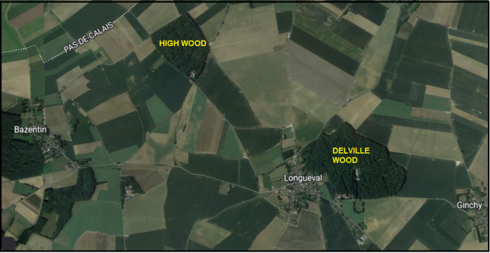 The battalion were in trenches on the right of HIGH WOOD. The war diary has:- 15.9.16 - 4 am - Coys moved into position in assembly trenches preparatory to attack. 6:20 am ZERO. Battn attacked the German trenches in four waves on a 400 yard frontage. Order of Coys was left to right D-A-B-C. Two Lewis guns with each Coy at the disposal of the OC Coy. Coys moved forward as ordered in 7th Bn order 106 and took first German line and switch line. Heavy machine gun fire heard from direction of HIGH WOOD where the 15th Bn London Regt failed to take first German line. The "?" on our immediate left moved along the eastern edge of HIGH WOOD and then moved along in front of our first line where it stopped, drawing heavy German fire on our trenches. C and D Coys reported rather heavy casualties but A and B Coys only slight. Coys dug themselves in, in front of the switch line. 8 am Right Coy in touch with N Zealanders on right, but left flank exposed owing to 15th Bn Lon Rgt being hung up in HGH WOOD. 9:30 am Information received from 15th Bn on our left that their A Coy had reached the switch line but B, C and C Coys and the whole of the 141st Inf Bde were hung up in the wood and failed to reach the German front line. 12 noon 15th Bn reported HIGH WEOOD in their hands. Coys reported persistent enemy shelling of the switch line which interfered considerably with work of consolidation. 3 pm Coys reorganised as far as possible and took up new line and dug in about 100 yards in front of switch line. Ammunition, bombs and water supply pushed forward to our front line and switch line. Reserve platoons arranged for supply of forward platoons. Considerable difficulty was experienced in keeping communications between Coys and Bn HQ. Telephone communication was almost impossible, lines being cut almost as soon as they were laid. Communication by runner was the only means found practicable and this sometimes causes shelling of the position to which runners were sent. Buzzer communication was kept up at intervals with Bde HQ, but communication with Battn on our left was continuous and many messages to Bde were despatched this way. Estimate casualties :-Capts 2, Lt. 1 2nd t 5 Other ranks 150-200. One machine gun was captured and brought away. Two heavy minenwerfer were also captured but these were too heavy to get away and had to be left in the line. 9 pm 3 Officers (left at wagon lines as reserves) joined Battn and one officer joined from course. Night passed quietly except for intermittent shelling of HIGH WOOD and SWITCH LINE. CWGC figures are 45 killed, of which 36 have no known grave. |