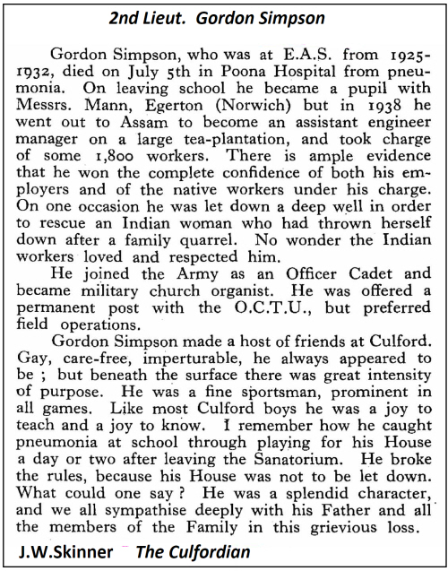 Gordon Wright SIMPSON was born in 1916(Walsingham Q3-1915 4B:409) son of Joseph Brunskill and Celia Elsie SIMPSON (née WRIGHT), later of Bournemouth